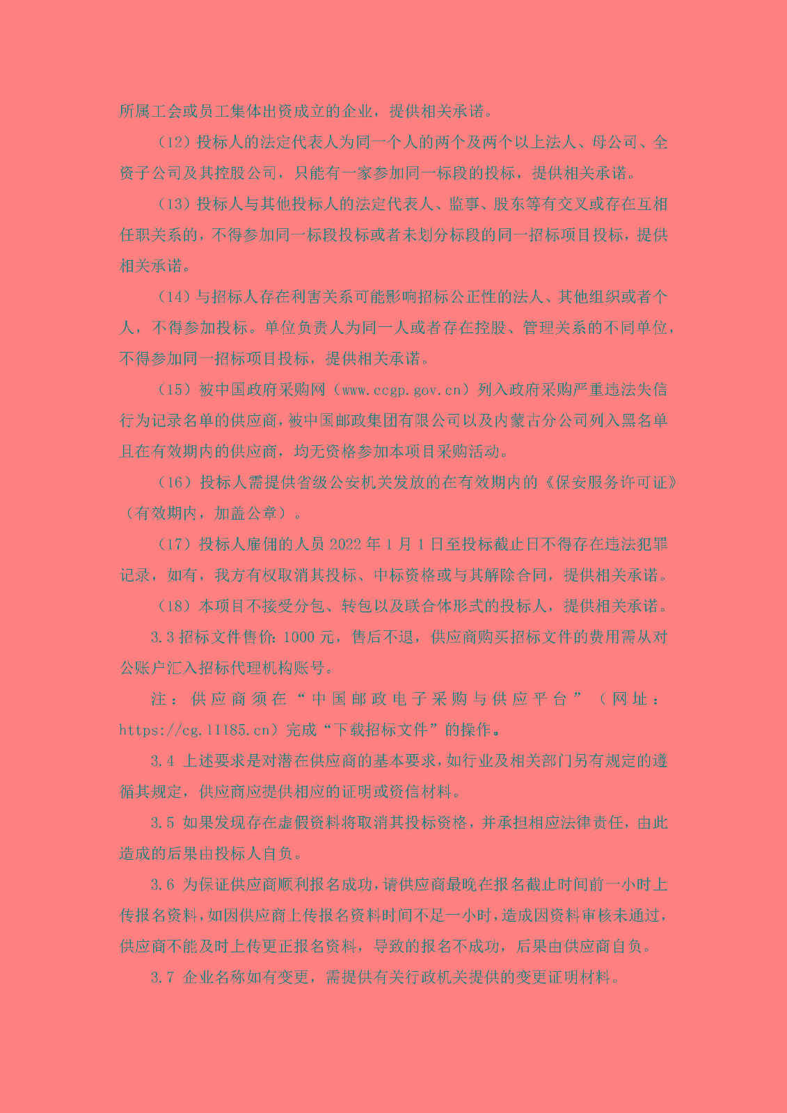 中國郵政集團(tuán)有限公司興安盟分公司保安外包服務(wù)項(xiàng)目招標(biāo)公告