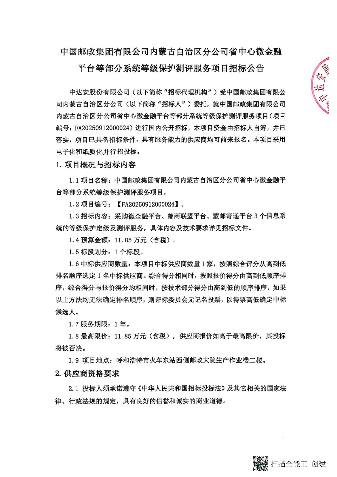 中國(guó)郵政集團(tuán)有限公司內(nèi)蒙古自治區(qū)分公司省中心微金融平臺(tái)等部分系統(tǒng)等級(jí)保護(hù)測(cè)評(píng)服務(wù)項(xiàng)目招標(biāo)公告
