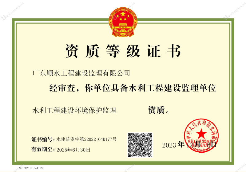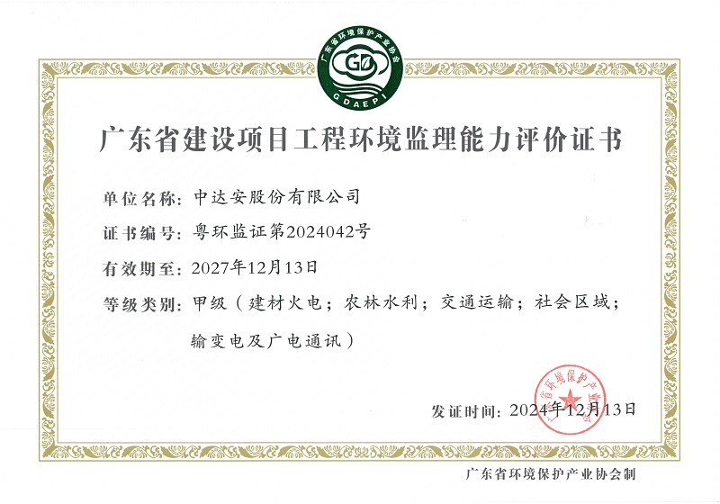 廣東省建設項目工程環(huán)境監(jiān)理能力評價甲級